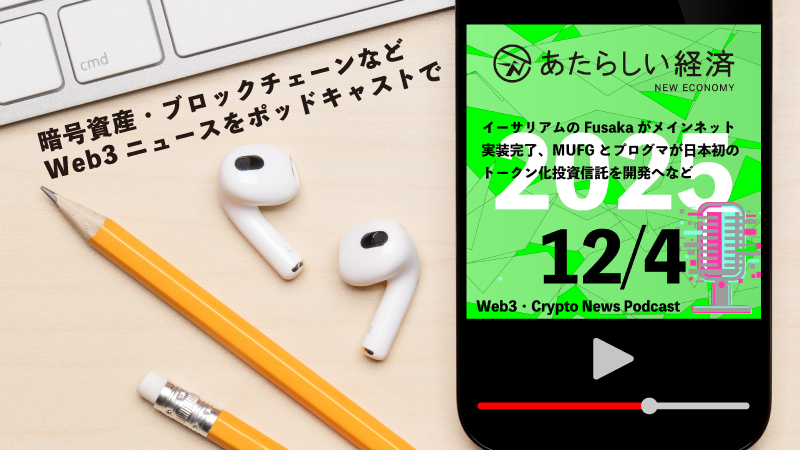 【12/4話題】イーサリアムのFusakaがメインネット実装完了、MUFGとプログマが日本初のトークン化投資信託を開発へなど(音声ニュース)
