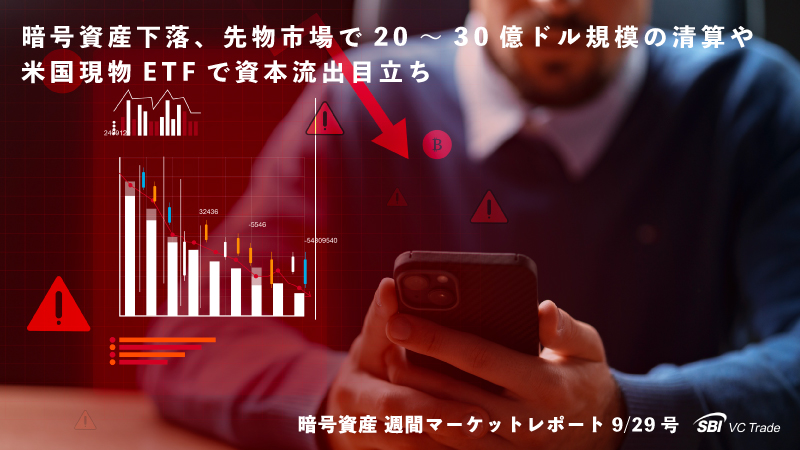 暗号資産下落、先物市場で20~30億ドル規模の清算や米国現物ETFで資本流出目立ち(仮想通貨市場レポート 9/29 号)