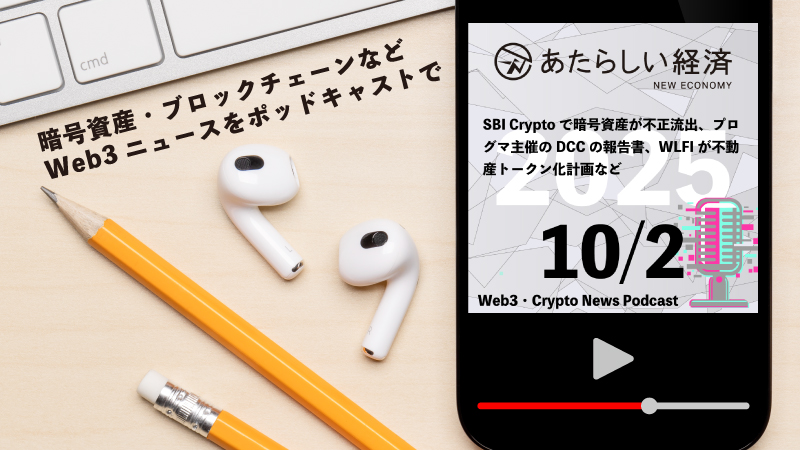 【10/2話題】SBI Cryptoで暗号資産が不正流出、プログマ主催のDCCの報告書、WLFIが不動産トークン化計画など(音声ニュース)