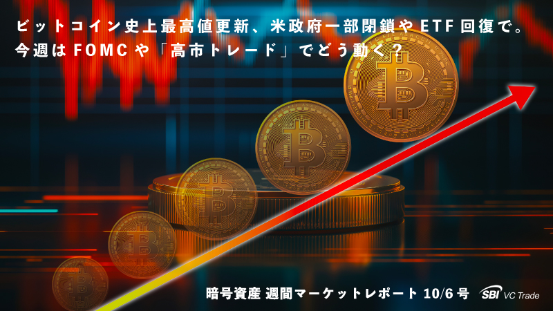 ビットコイン史上最高値更新、米政府一部閉鎖やETF回復で。今週はFOMCや「高市トレ···